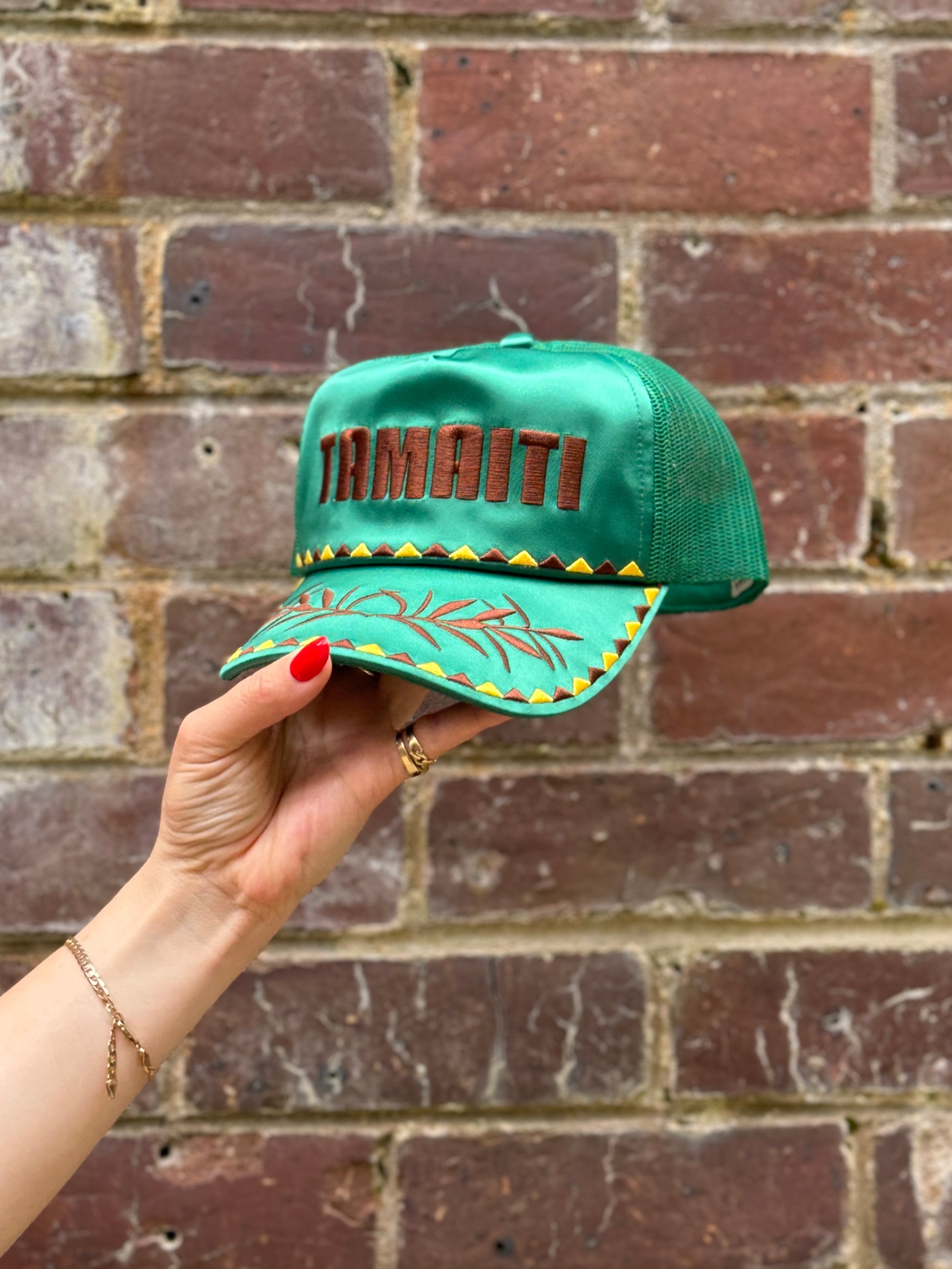 Introducing our latest cap style - crafted in a sleek satin fabric with a deeper, relaxed crown for the perfect trucker fit. This unstructured cap features our embroidered Tamaiti typeface paired with a beautiful Tōtara leaf design and our signature Niho border.